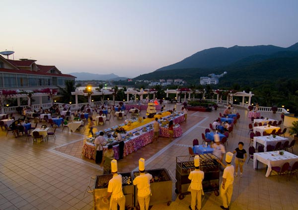 三亞金棕櫚度假酒店座落在亞龍灣最中間的位置,大!频杲ㄖ礃(gòu)成了“三位一體”的酒店格局。三亞金棕櫚度假酒店大堂觀海視野開闊,180度海景一覽無余。酒店既有沙灘又有湖泊,讓您既可以在大海戲水又可以在湖泊垂釣,是亞龍灣擁有空中花園、海景、湖景角度均佳的酒店,客房景致無論海景還是湖景都非常賞心悅目,魚和熊掌兼得。