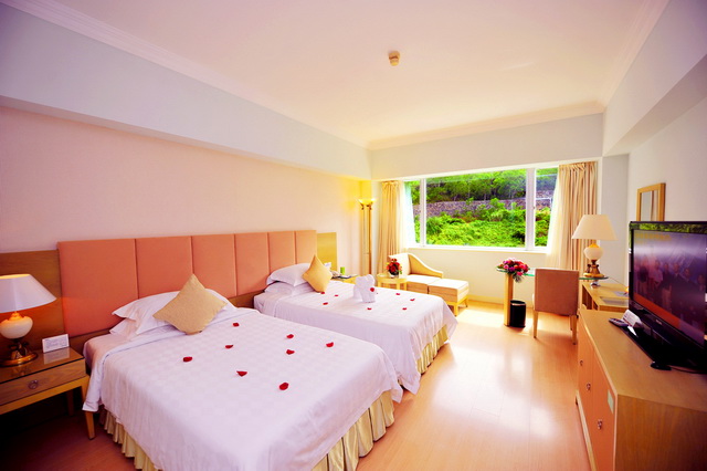 高級(jí)海景雙床房 面積:39平方米 樓層:2-8層 海景:50度 陽臺(tái):無 雙標(biāo):1.2*2米 浴缸:大部分房間有 寬帶:免費(fèi)
