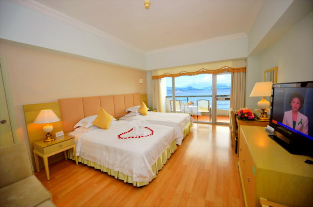 豪華海景雙床房 面積:39-45平方米 樓層:2-8層 海景:180度海景 陽臺(tái):觀海陽臺(tái) 雙標(biāo):1.3*2米 浴缸:大部分房間有 寬帶:免費(fèi)