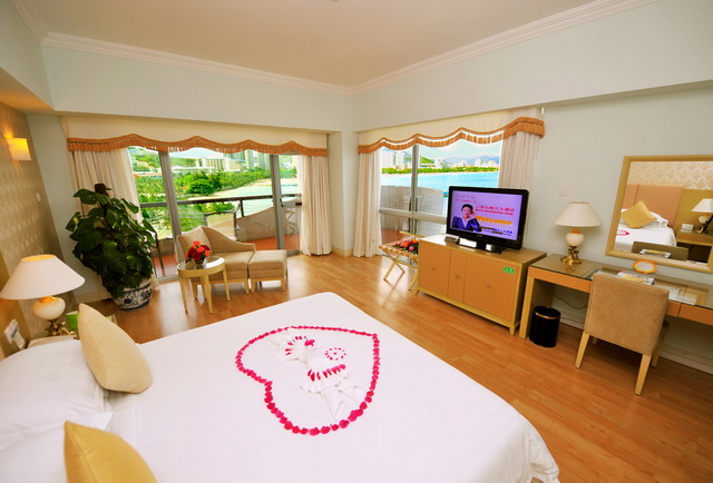 豪華海景大床房 面積:39-45 平方米 樓層:2-8層 海景:180度海景 陽臺(tái):觀海陽臺(tái) 大床:1.8*2米 浴缸:大部分房間有 寬帶:免費(fèi)