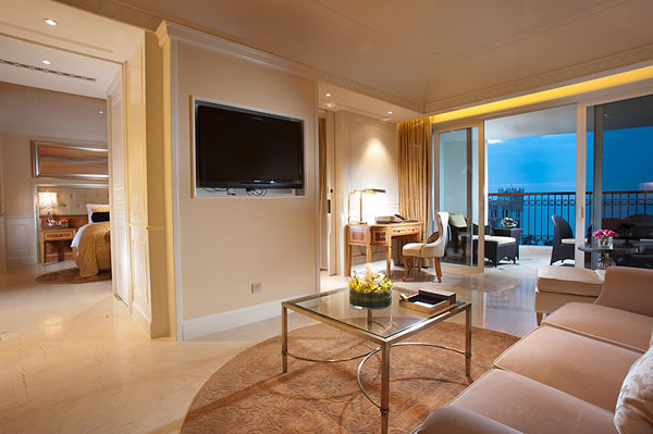 三亞財(cái)富海灣大酒店位于風(fēng)景優(yōu)美的三亞灣臨海一線黃金海景地段,酒店緊鄰規(guī)劃中的三亞新城,北鄰三亞市鳳凰國際機(jī)場約4公里,西距天涯海角風(fēng)景度假區(qū)約8公里,南與三亞灣西島——玳瑁島隔海相望,并與三亞市機(jī)場、旅游區(qū)共同構(gòu)成大會議旅游度假圈,是理想的度假休閑、商務(wù)會議之地。酒店占地約5.5萬平米,建筑面積逾9萬平米,共391套豪華酒店房(含頂級總統(tǒng)套),83套族系公館, 3套頂級獨(dú)棟別墅。酒店結(jié)合三亞當(dāng)?shù)貧夂蚝惋L(fēng)俗,遵循財(cái)富聯(lián)合集團(tuán)“高端精品”產(chǎn)品定位,邀請國際著名設(shè)計(jì)公司運(yùn)用國際上最先進(jìn)的設(shè)計(jì)理念,按照白金五星級酒店標(biāo)準(zhǔn)興建,具有濃厚的熱帶風(fēng)情。景觀設(shè)計(jì)采用了法國現(xiàn)代古典主義風(fēng)格,突出洛可可的華麗與奢華。酒店特設(shè)三亞罕見的2000平米豪華迎賓大堂,步入其中便能立刻感覺到如盛宴現(xiàn)場般的奢華感受。酒店擁有高檔中、西餐廳,韓式料理餐廳,及提供各式美酒、鮮榨果汁、茶點(diǎn)和健康小吃的特色酒吧、大堂吧,讓賓客充分感受熱帶的氛圍;完善的酒店獨(dú)享沙灘、健身娛樂設(shè)施、及酒店SPA所提供的泰式等各式愜意自在的按摩,將使您充分享受所有的三亞時(shí)光,難以忘懷。同時(shí),三亞頂級的會議廳,及專業(yè)團(tuán)隊(duì)將為您提供一站式會務(wù)服務(wù)。會議廳內(nèi)部設(shè)施齊全,功能完善,是舉辦商務(wù)會議的理想之選。酒店還擁有可容納380人的豪華宴會廳—國王宴會廳,是為財(cái)富領(lǐng)袖量身定制的專屬配置,無論是頂級規(guī)格的私人聚會,還是層峰匯聚的商務(wù)晚宴,都能在此得到完美呈現(xiàn)。