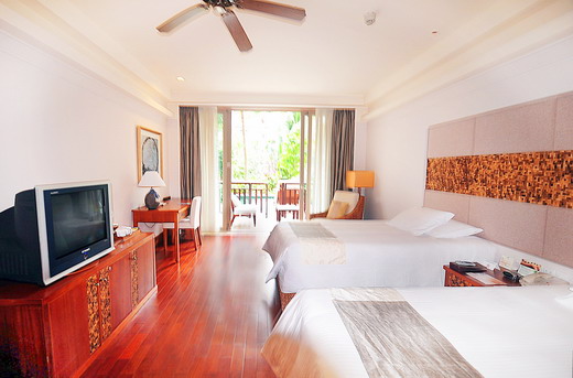 豪華泳池房,面積58平方米,樓層1層,有陽臺,大床(2*2米),有浴缸,免費寬帶